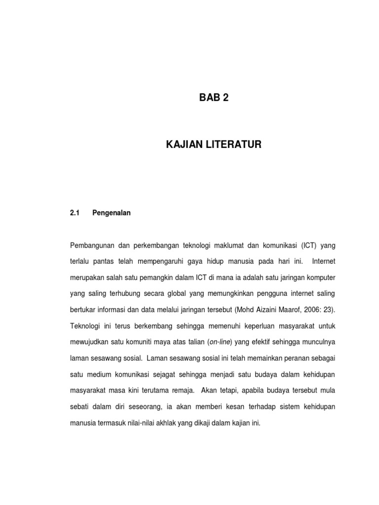 Bab 2 Kajian Literatur Pengaruh Dan Kesan Facebook Terhadap Akhlak Pelajar Sekolah Menengah Dalam Daerah Kota Bharu Kelantan