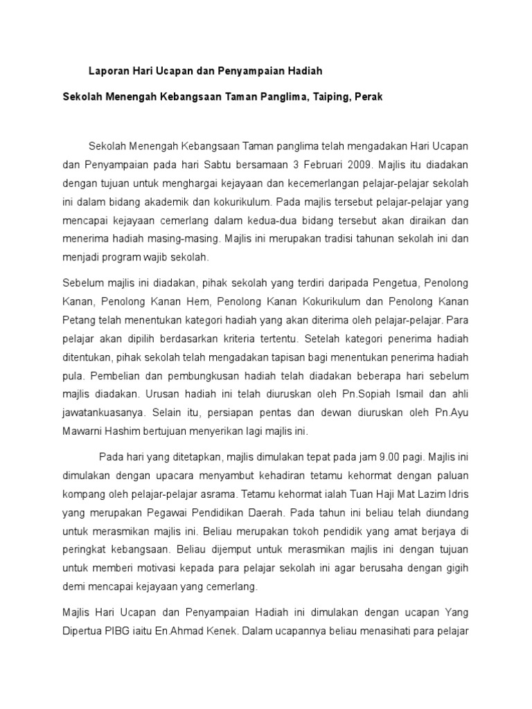 Contoh Karangan Spmlaporan Hari Kokurikulum