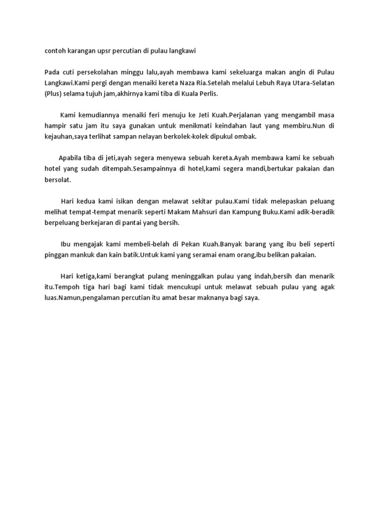 Contoh Karangan Upsr Percutian Di Pulau Langkawi