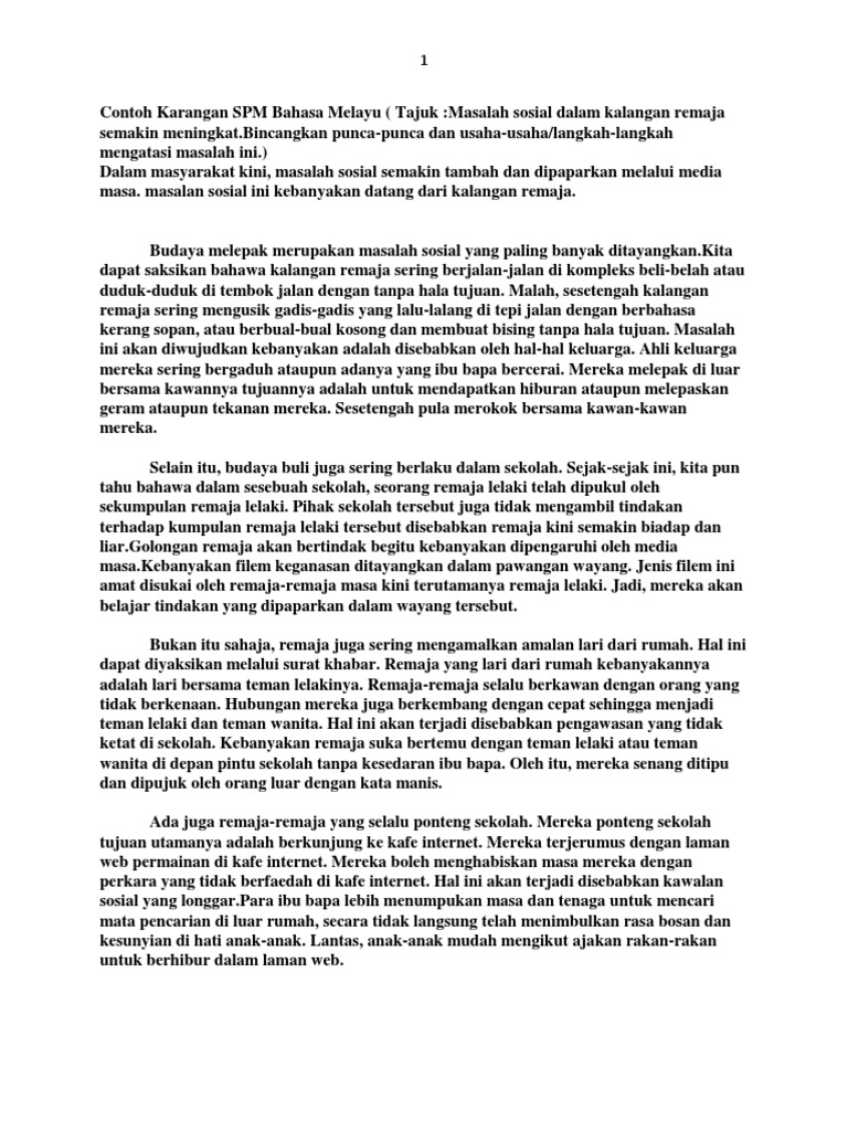 Contoh Karangan Spm Bahasa Melayu