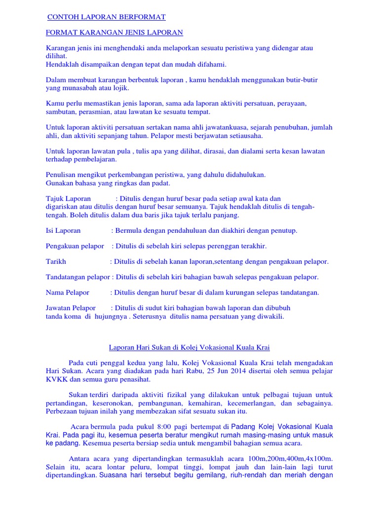 Contoh Karangan Laporan Hari Sukan Pt3 Frasmi