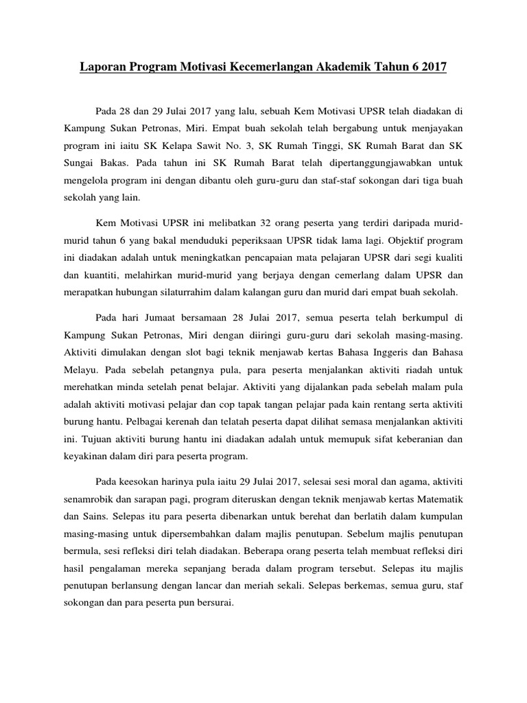 Laporan Kem Motivasi Upsr 2017