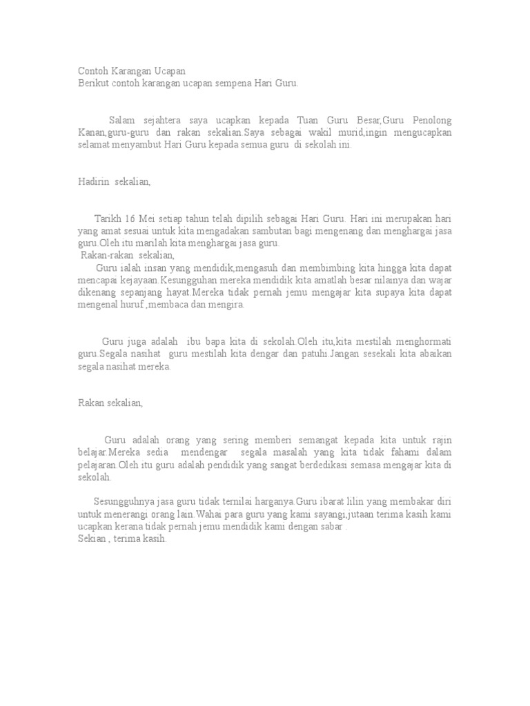 Contoh Karangan Ucapan Sempena Hari Guru Doc Chi Square Academia Edu