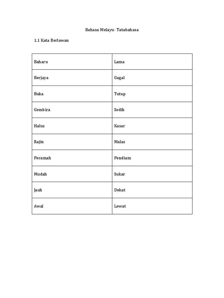 Bahasa Melayu Perkataan Berlawan