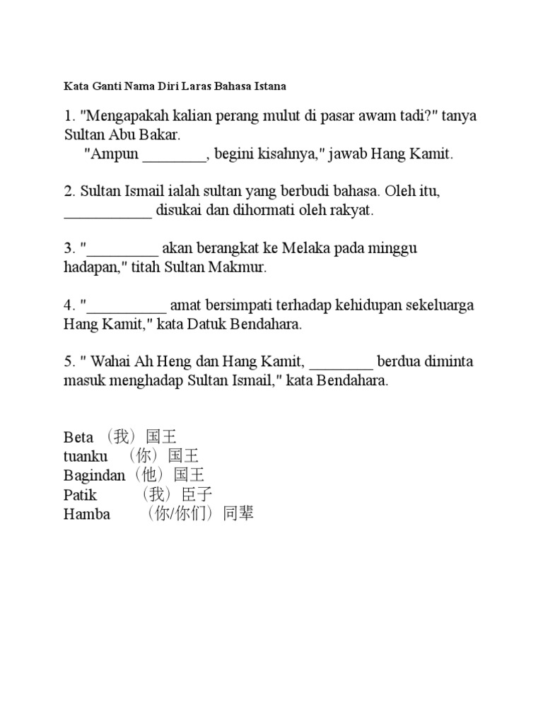 Kata Ganti Nama Diri Laras Bahasa Istana Materialy Dydaktyczne