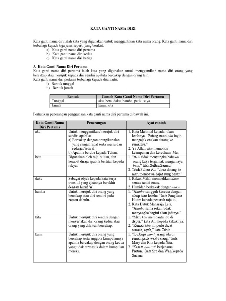 Ceria Belajar Nota Kata Ganti Nama Diri Sumber Facebook