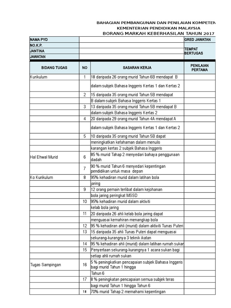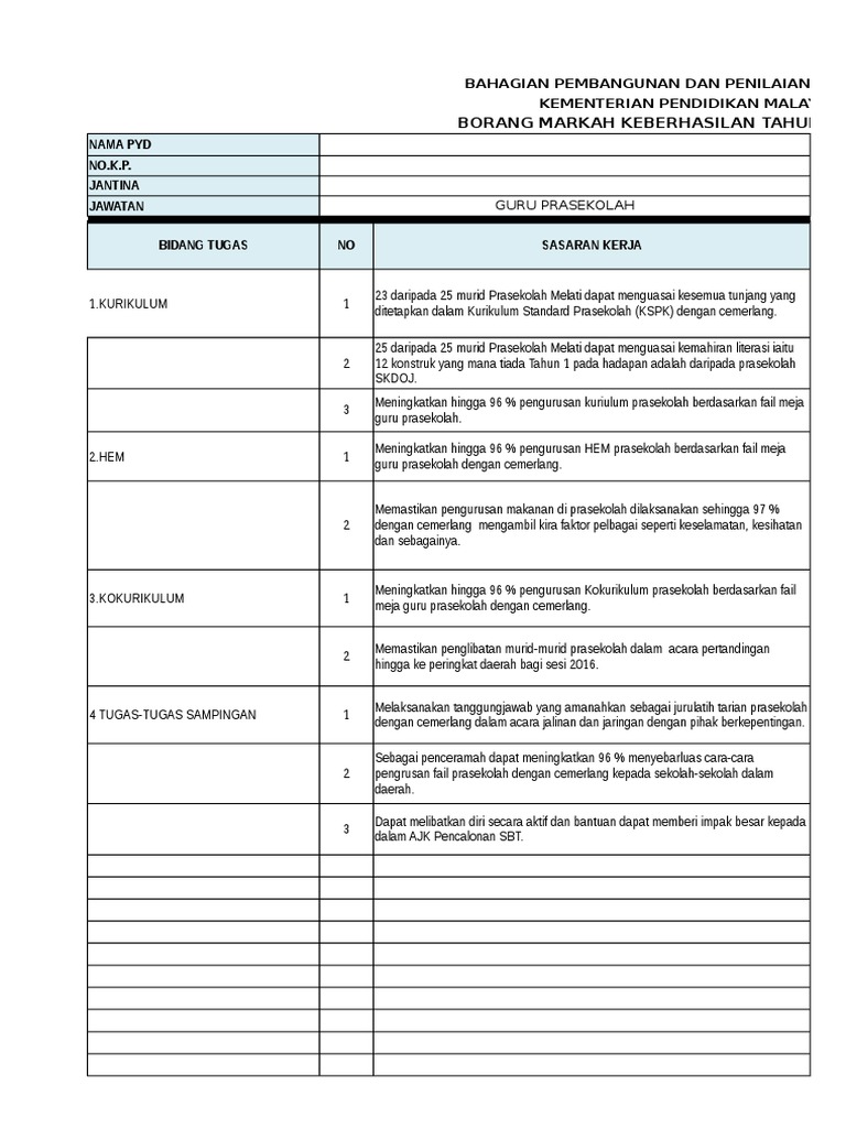Contoh Borang Keberhasilan Guru Penolong Akademik Biasa Sumber Pendidikan