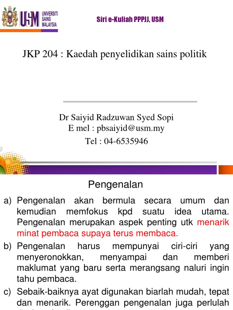 Jkp204 Full Pdf Siri E Kuliah Pppjj Usm Jkp 204 Kaedah Penyelidikan Sains Politik Dr Saiyid Radzuwan Syed Sopi E Mel Pbsaiyid Usm My Tel 04 6535946 Course Hero