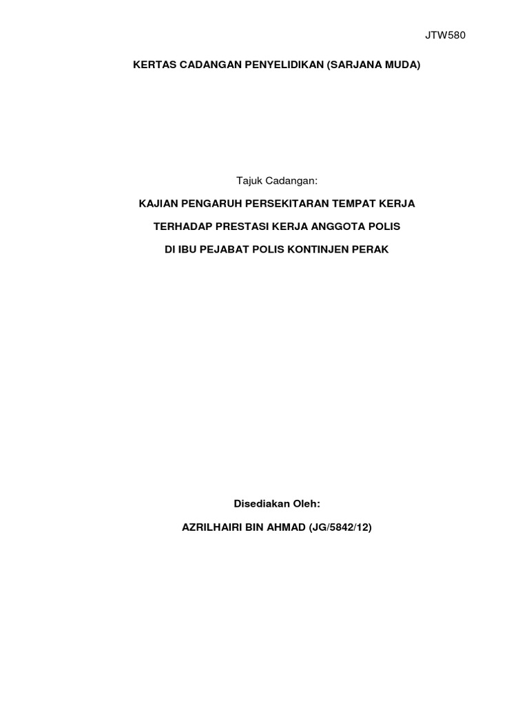 Pdf Kertas Cadangan Penyelidikan Sarjana Muda Tahap Sikap Kerja Dan Hubungannya Dengan Prestasi Kerja Pekerja Kajian Di Syarikat Triple A