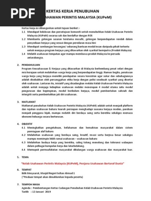 Kertas Kerja Penubuhan Kelab Usahawan Perintis
