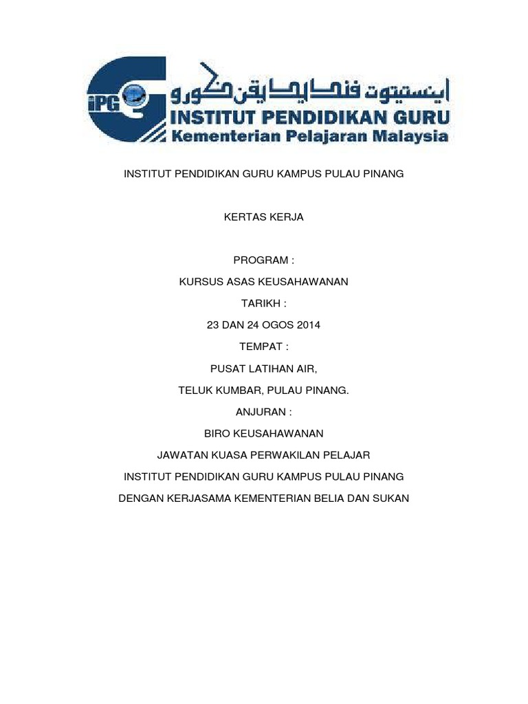 Contoh Kertas Kerja Seminar Keusahawanan