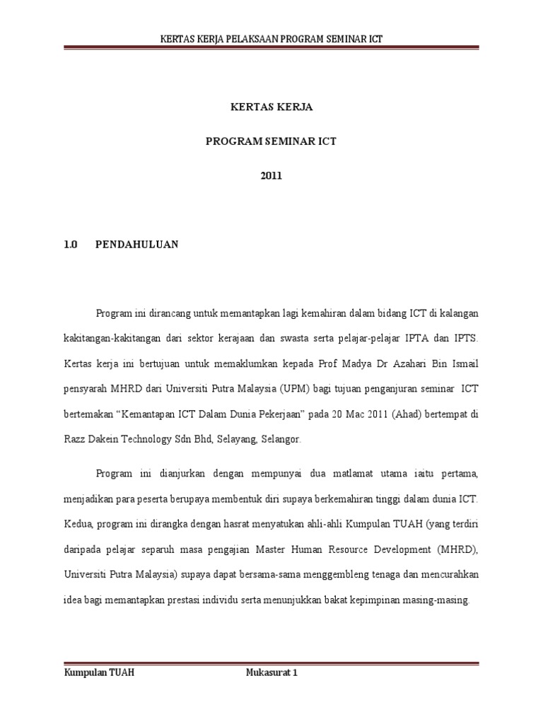 Pdf Kertas Kerja Pelaksaan Program Seminar Ict Hana Farhana Academia Edu