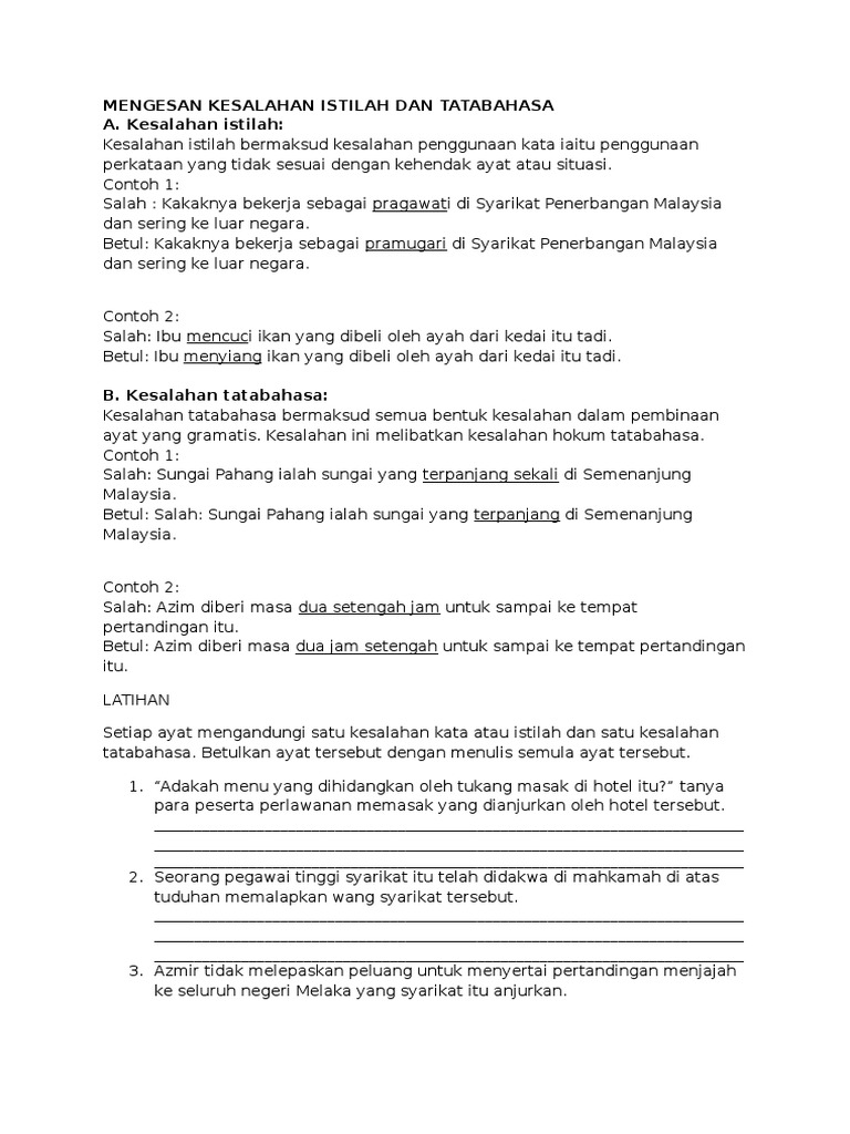 Mengesan Kesalahan Istilah Dan Tatabahasa Spm Docx Pdf Document
