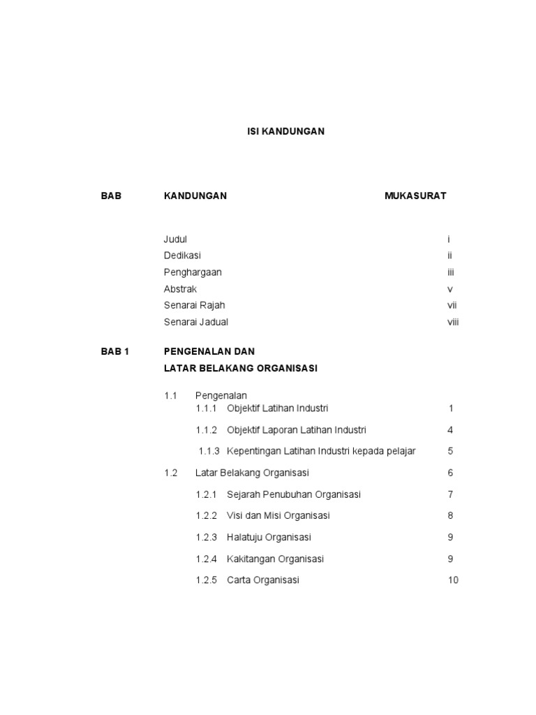 Contoh Kandungan Laporan Latihan Industri Politeknik