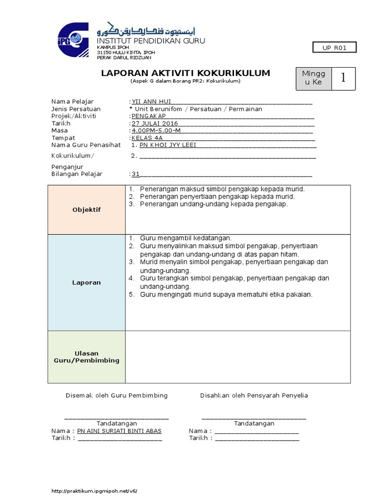 Format Laporan Aktiviti Kokurikulum Praktikum