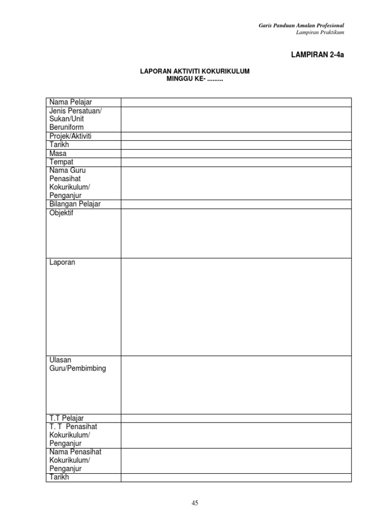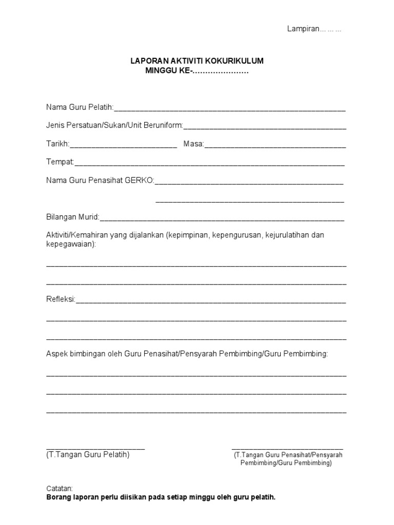 Contoh Borang Laporan Aktiviti Kokurikulum
