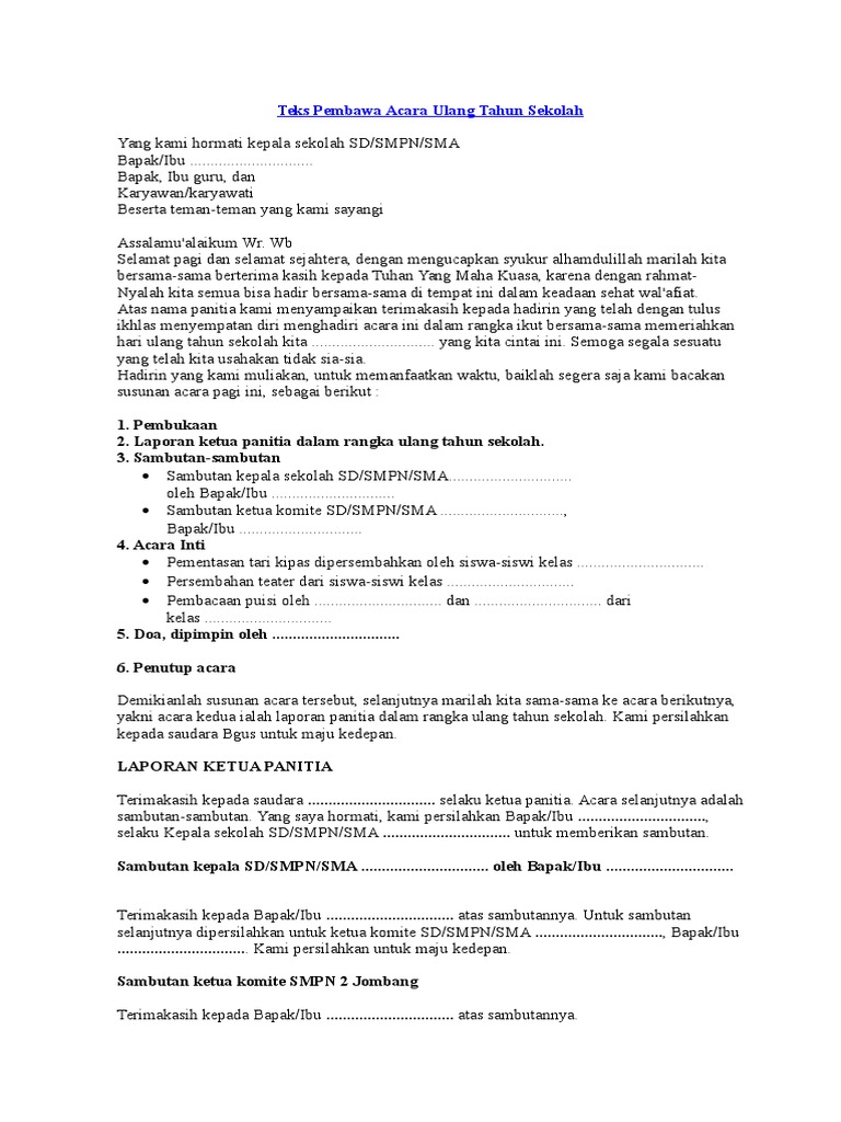 Contoh laporan kegiatan ulang tahun sekolah. Sembilan belas tahun usia smp negeri 2 puhpelem dalam mengabdikan diri di bidang pendidikan merupakan usia yang panjang dan matang bagi sebuah lembaga pendidikan untuk mencapai predikat nama baik dan nama besar. Membuat laporan kegiatan sekolah sebenarnya bukanlah hal yang sangat sulit dilakukan namun orang orang biasanya langsung berpikir bahwa hal ini akan sulit dan lebih memilih meminta orang lain untuk melakukannya. Demikian laporan kegiatan sekolah di smp negeri 3 surabaya tahun ajaran 2019 2020. Rangkaian acara untuk siswa baru meliputi masa orientasi siswa mos pentas seni dan malam keakraban.