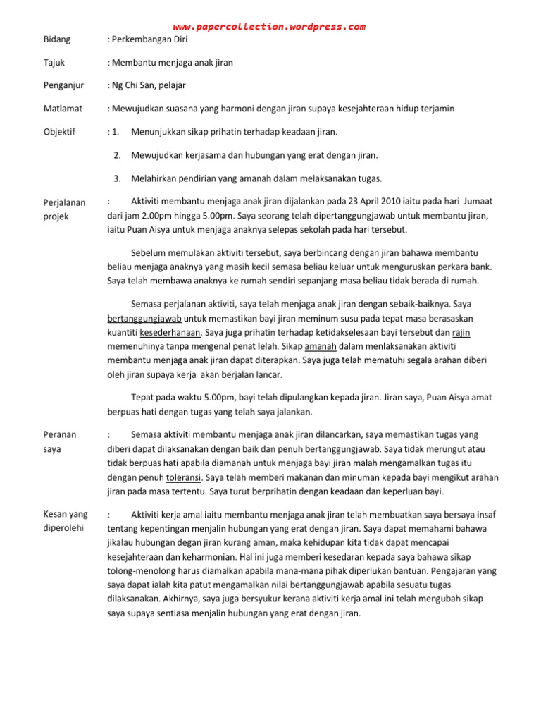 Contoh Laporan Kerja Amal Contoh 1 Contoh Sahaja Jangan Tiru Bidang Perkembangan Diri Tajuk Membantu Menjaga Anak Jiran Penganjur Ah Beng Pelajar Course Hero