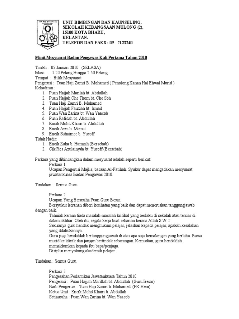 Contoh Minit Mesyuarat Kelab Bimbingan Dan Kaunseling