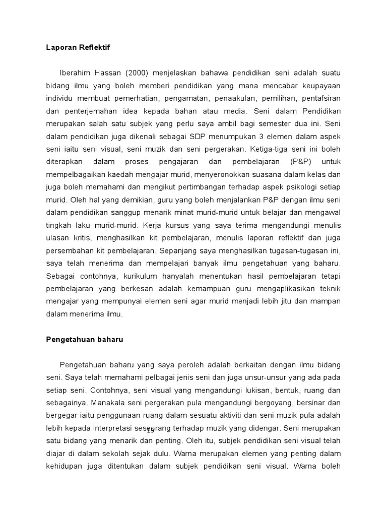 Contoh Refleksi Kerja Kursus Pendek Titas