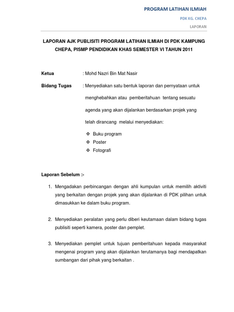 Doc Contoh Format Laporan Aktiviti Kursus Kokurikulum Berkredit Nur Nabilah Academia Edu