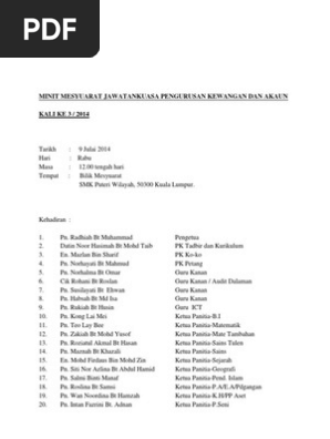 Minit Mesyuarat Kewangan Ke 2 2014 Pdf Document