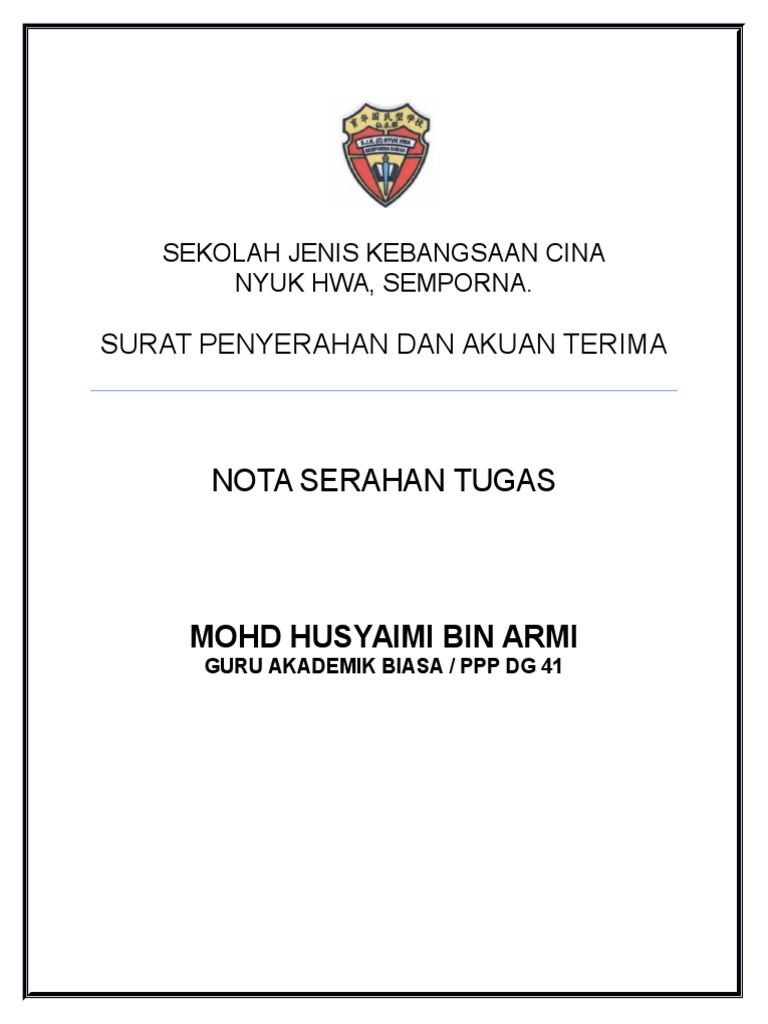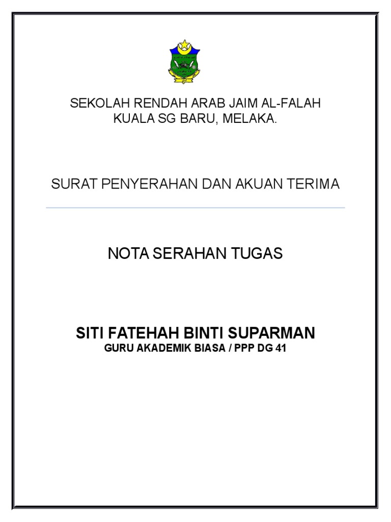 Contoh Nota Serah Tugas Perlu Diisi Untuk Guru Yang Berpindah Keluar