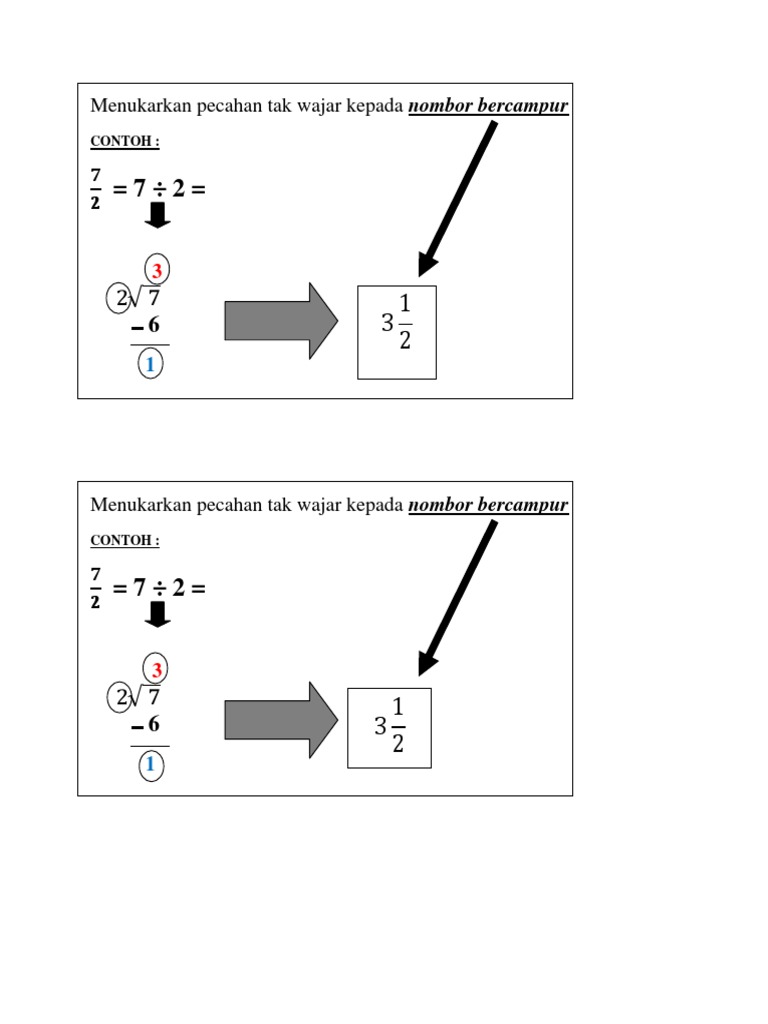 Tukar Pecahan Tak Wajar Kepada Pecahan Nombor Bercampur