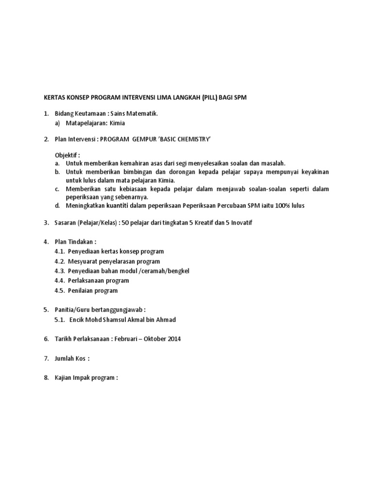 Program Intervensi Lima Langkah Basic Chemistry Docx