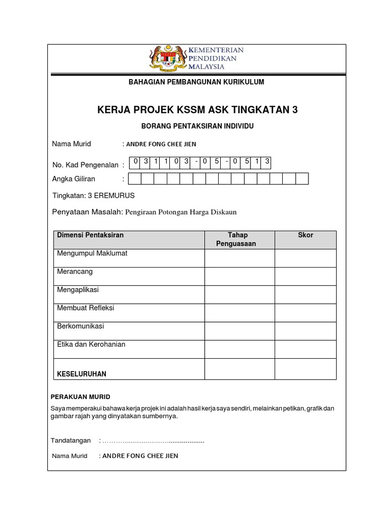 Kerja Projek Ask Tingkatan 3 Cikgu Norazimah