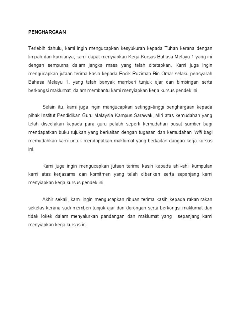 Contoh Penghargaan Untuk Kerja Kursus Sejarah