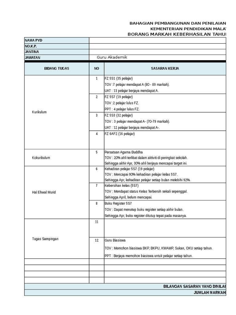 Contoh Borang Keberhasilan Guru Penolong Akademik Biasa Sumber Pendidikan