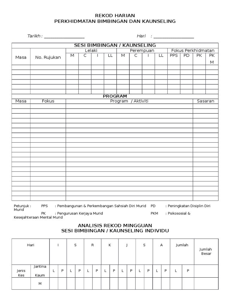 Buku Rekod Perkhidmatan Bimbingan Dan Kaunseling