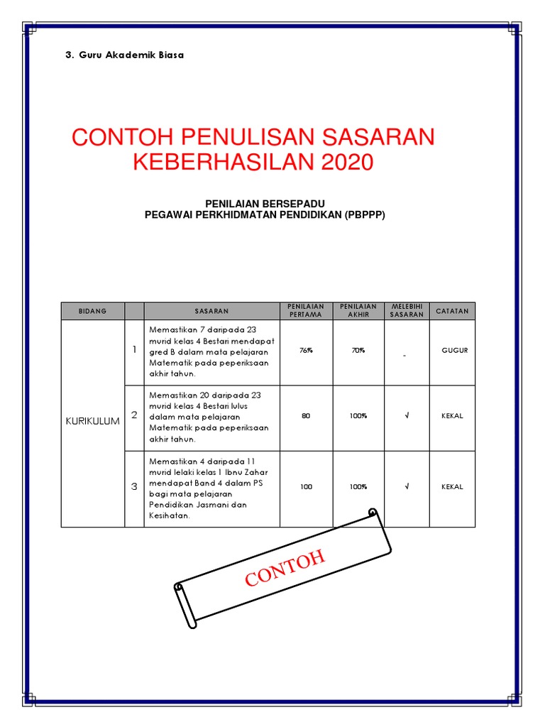Contoh Penulisan Sasaran Keberhasilan Pbppp Mengikut Jawatan Dan Skop Tugas Ppp Mycikgu Net