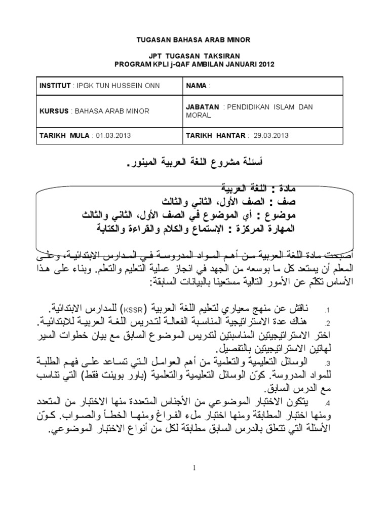 Contoh Assignment Bahasa Arab Rasmi F