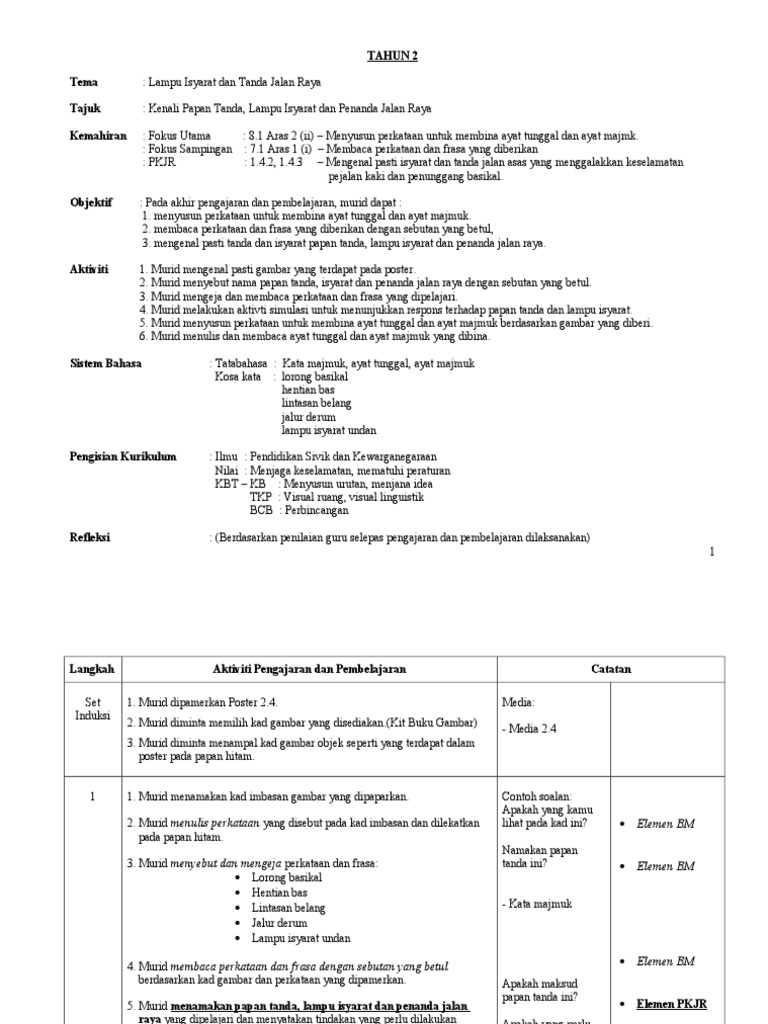 Doc Rph Kssr Bahasa Melayu Tahun 1 Tahun 2 Docx Nia Marara Academia Edu