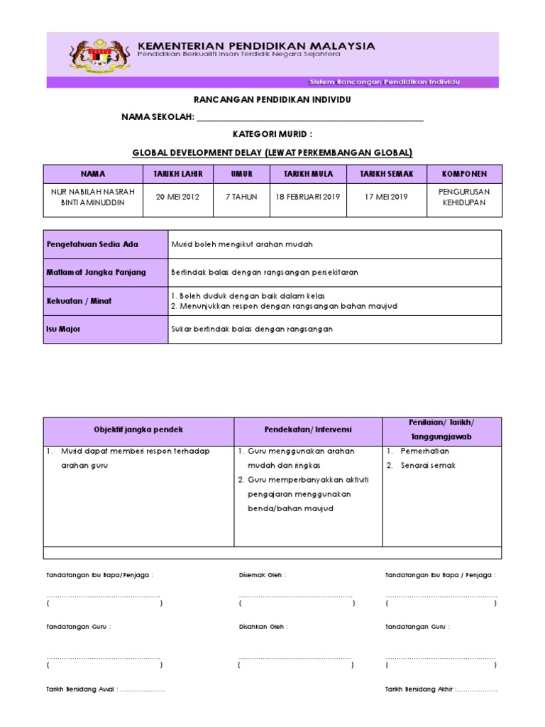 Rpi Borang Format Rancangan Pendidikan Individu