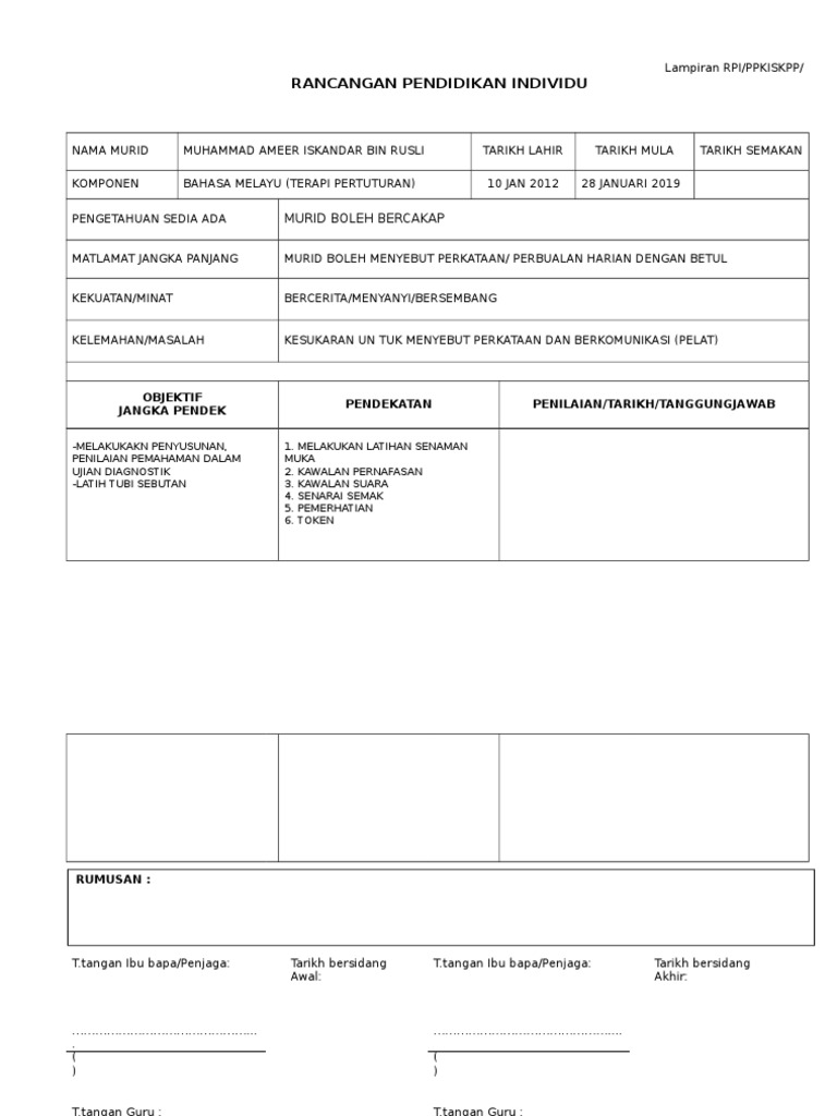 Doc 38333486 Rpi Borang Format Rancangan Pendidikan Individu Ijat Syafiq Academia Edu