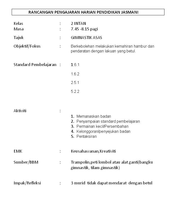 Pendidikan Jasmani Dan Kesihatan Rancangan Pengajaran Harian Pendidikan Jasmani