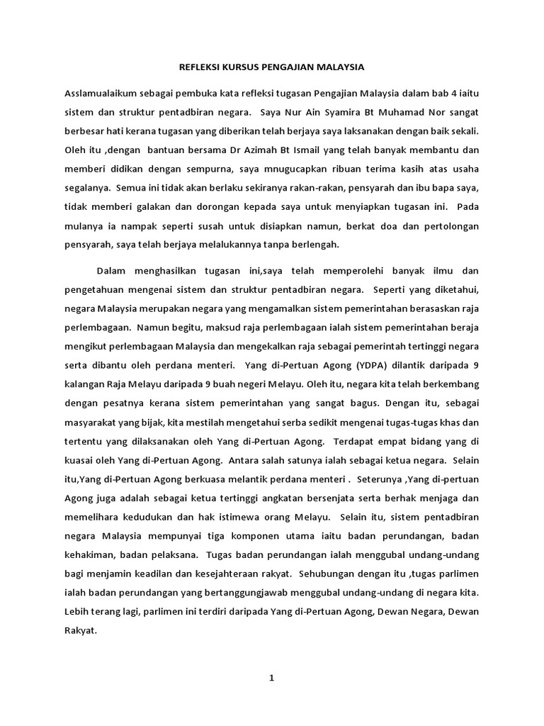 Contoh Refleksi Pengajian Malaysia