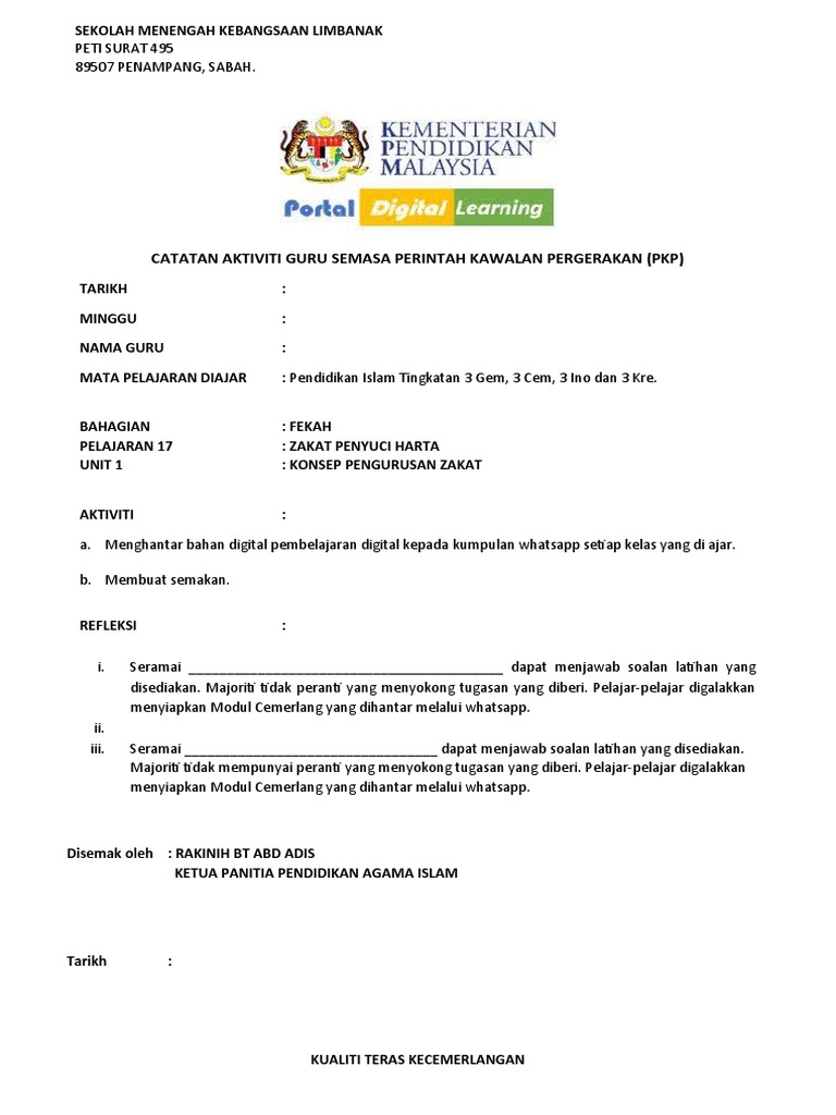 Contoh Template Catatan Aktiviti Guru Semasa Perintah Kawalan Pergerakan Mycikgu Net