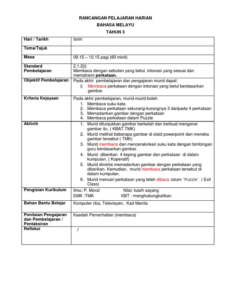 Koleksi Rph Bahasa Melayu Tahun 4 Sumber Pendidikan