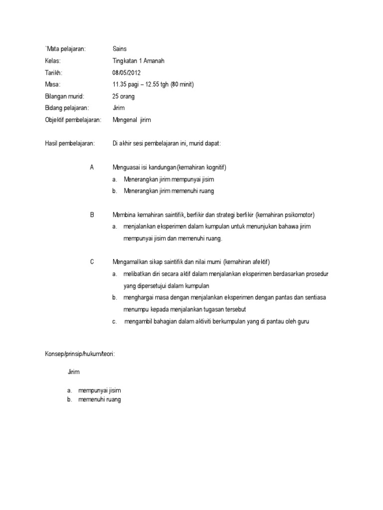 Contoh Rph Sains Ting 1