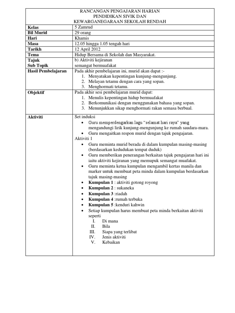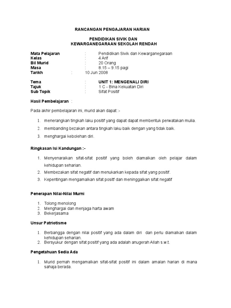 Doc Tahun 4 Rancangan Pengajaran Harian Pendidikan Sivik Dan Kewarganegaraan Zaahara Mahlidi Academia Edu
