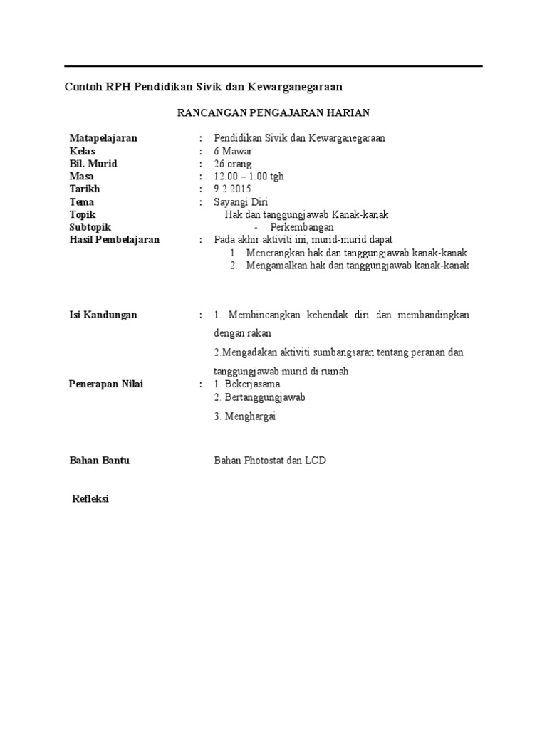 Contoh Rph Pendidikan Sivik Dan Kewarganegaraan