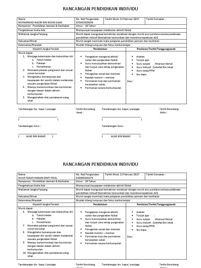 Rpi Borang Format Rancangan Pendidikan Individu