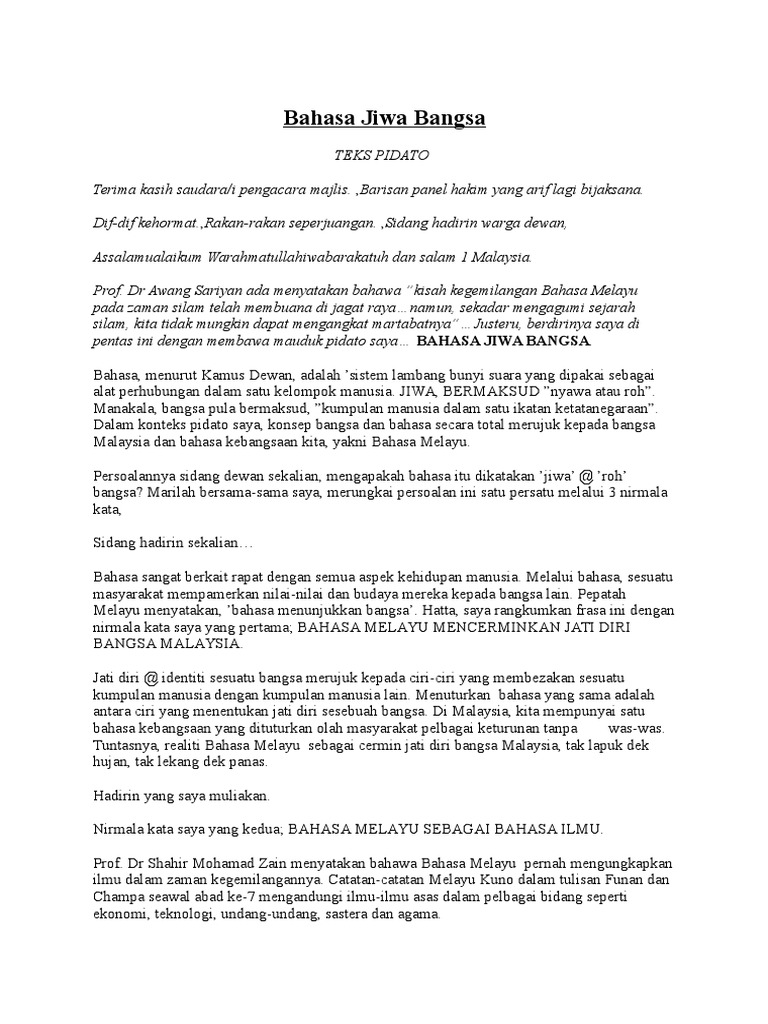 Teks Pidato Bahasa Jiwa Bangsa 2