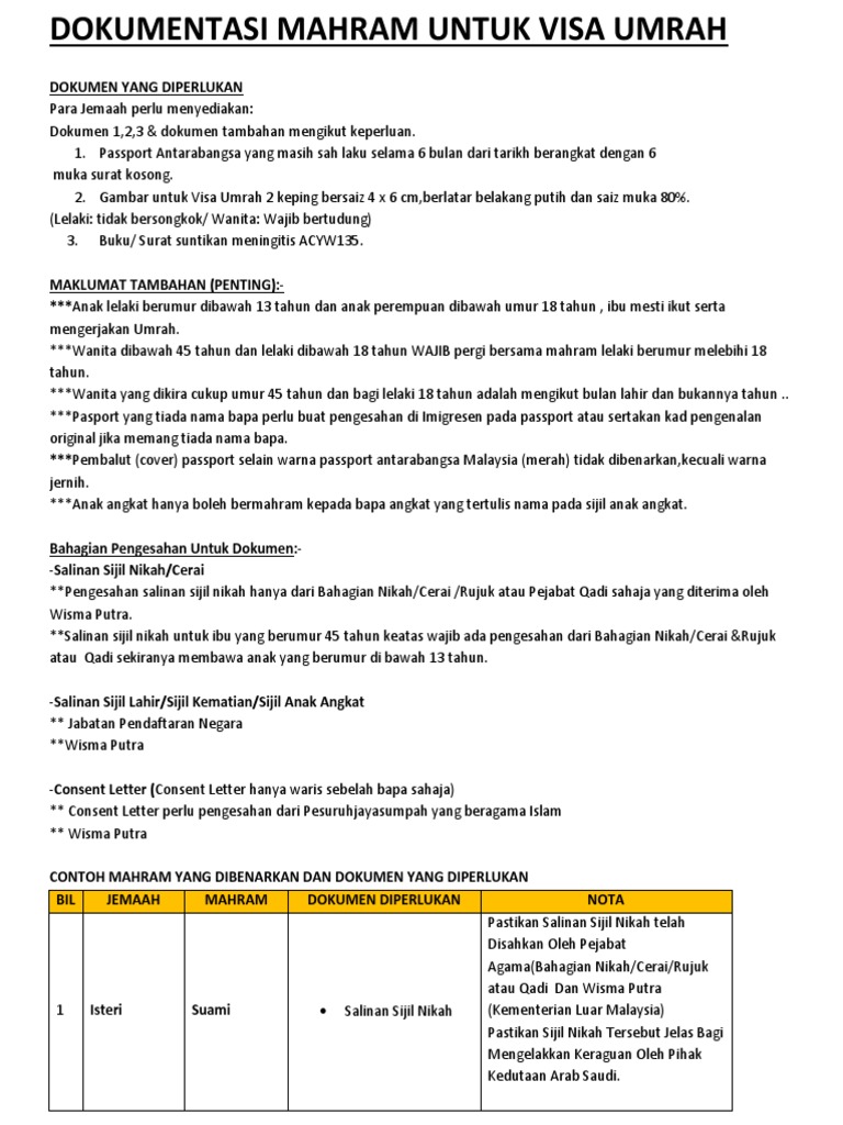 Dokumen Mahram Untuk Proses Visa Umrah Pdf