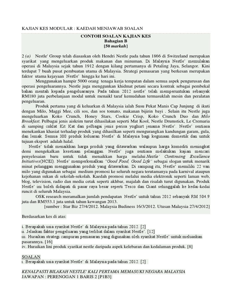 Jawapan Soalan Spm Kajian Kes Doc Document