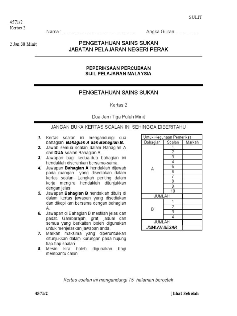 Kertas Percubaan Sains Sukan Kertas 2